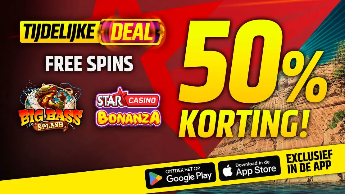 Pak nu 50% mega korting op Free Spins! Met deze Tijdelijke Deal speel je Big Bass Splash en Starcasino Bonanza extra voordelig via de Starclub. Wees er snel bij! 🎰